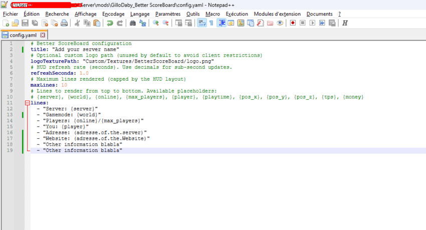 Coloca el archivo BetterScoreboard.jar en la carpeta Mods de tu servidor