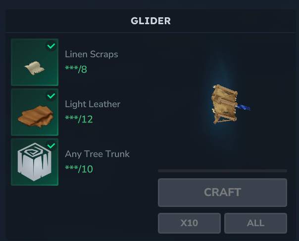 Un mod sencillo que hace que el planeador sea craftable y permite que permanezca en el aire durante más tiempo. El sonido también fue modificado, ya que en mi opinión era un poco fuerte y molesto.