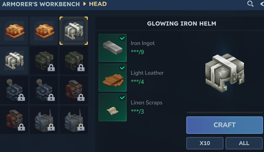 Se trata de un mod sencillo que añade versiones brillantes de los cascos básicos en la mesa de trabajo de los armeros, ¡para ayudarte a ver en la oscuridad sin necesidad de llevar una antorcha!