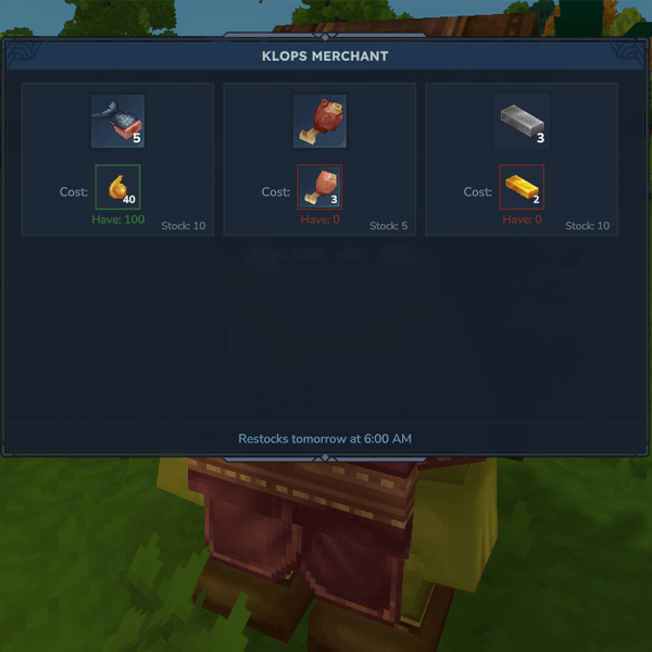Añade una posibilidad de aparición del Comerciante Klops en el mundo, además de un surtido para él.