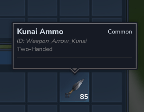 Se puede fabricar en la mesa de trabajo, utilizando la misma receta que el arco tosco. También utiliza munición de Kunai (tiene el mismo icono que el kunai, así que asegúrate de comprobar el nombre) que, por ahora, tiene la misma receta que las flechas.