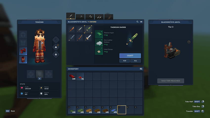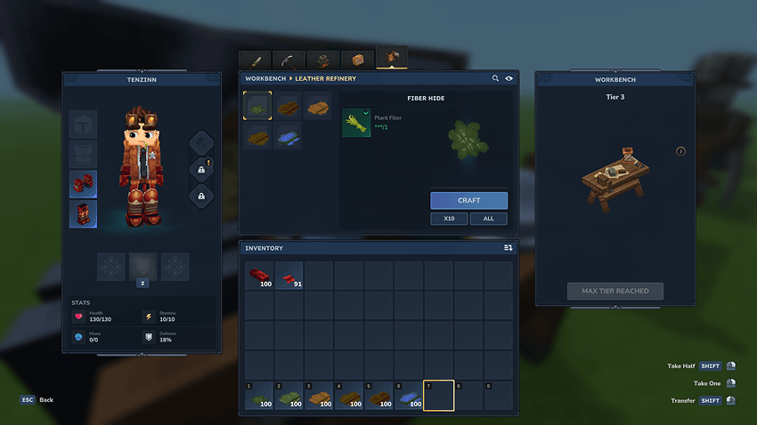 En esta nueva sección, puedes crear todos los niveles de cuero utilizando el nivel anterior. También se incluye el cuero de fibra, que puedes obtener colocando la Piel de Fibra en el Rack de Curtido.