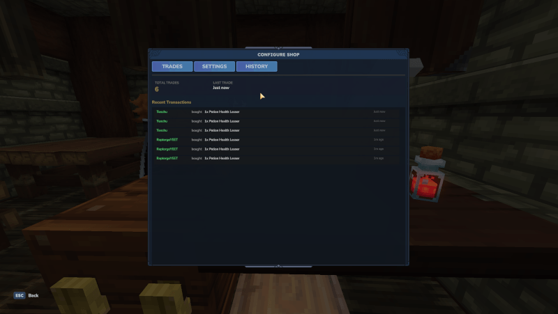 Un mod de comercio entre jugadores para los servidores de Hytale. Configura tu propia tienda, establece los intercambios y permite que otros jugadores compren de ti, incluso cuando estés desconectado.