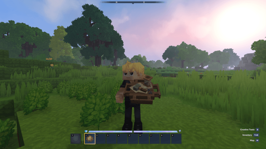 Agrega todos los troncos de madera completos, así como todas las esquinas de madera, ramas largas y cortas al banco de t...