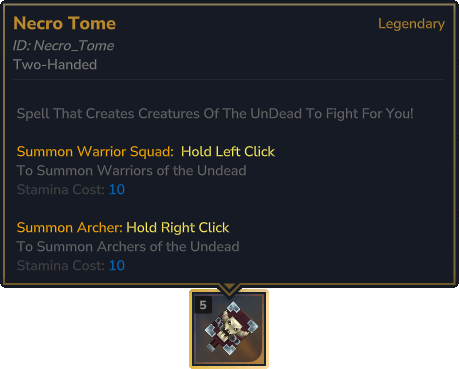 Agrega el Tomo Necro Craftable desde la Mesa de Trabajo del Arcanista, esta vez te permite invocar 2 invocaciones diferentes dependiendo de si mantienes presionado el clic izquierdo o derecho.