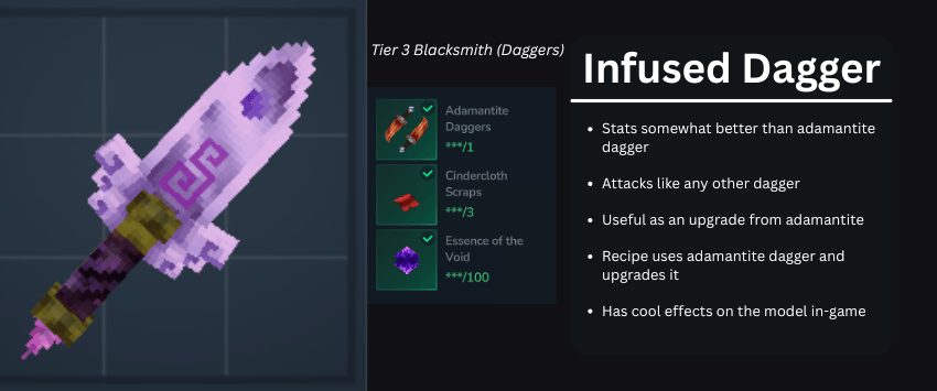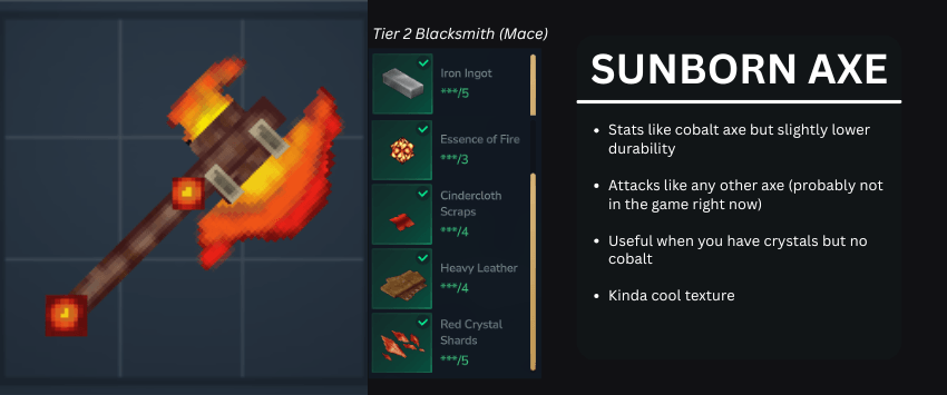 Actualmente, desde el primer lanzamiento del mod, el mod contiene Casco de Cubo Casco de Sigilo Espada Sellada Martillo ...