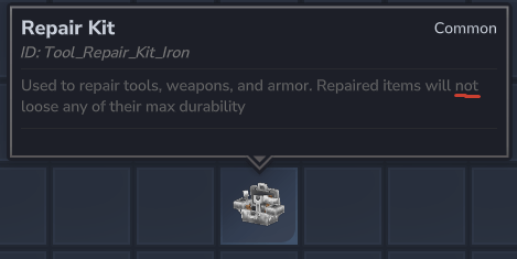 Este es un paquete de Hytale que elimina la penalización del 10% de durabilidad por reparar herramientas, armas o armaduras utilizando un kit de reparación.