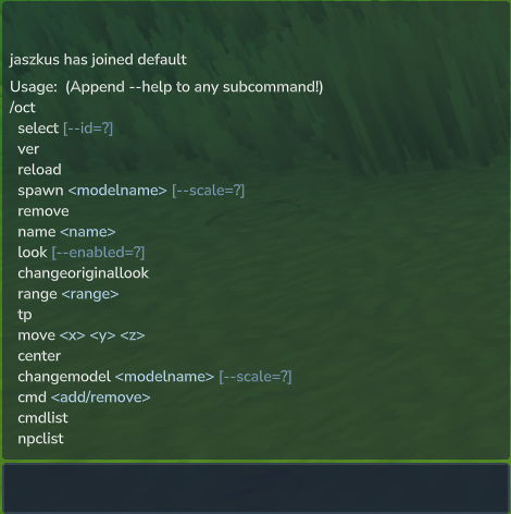 Ejemplo: /oct spawn NPCs/Shopkeeper 1.0