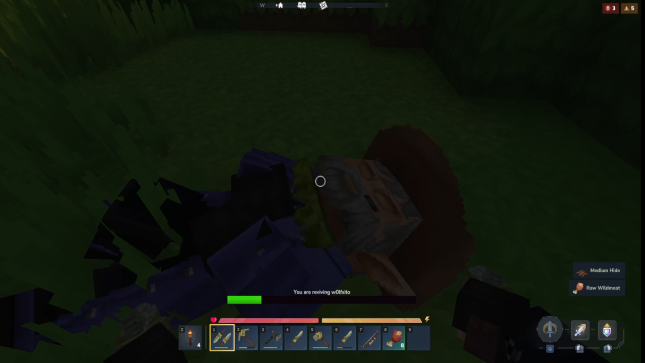Para revivir a un jugador caído, simplemente agáchate (sneak) cerca de él durante unos segundos.