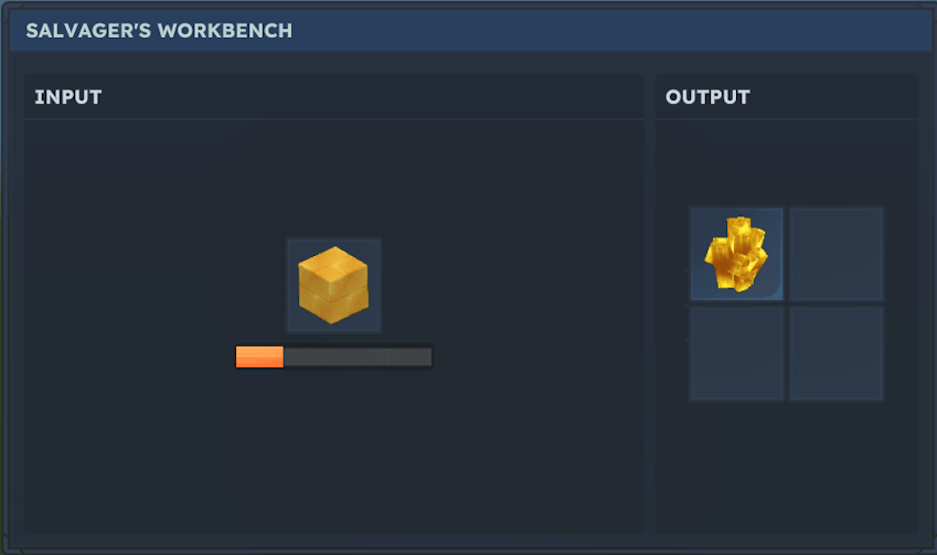 Te permite recuperar Ladrillos de Oro y todas sus variantes de vuelta en Mineral de Oro. ¡Es útil si has saqueado algunos de estructuras!