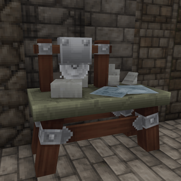 Actualmente, el mod introduce una pequeña variedad de ladrillos de piedra y bloques de piedra triturada, todos obtenibles a través de la Mesa de Trabajo del Constructor.