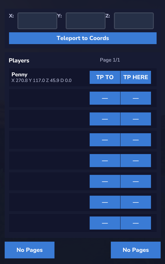 Un plugin de Hytale para añadir una interfaz gráfica simple para teletransportar jugadores. Ejecuta /teleportplayers o /tpp para abrir la GUI.
