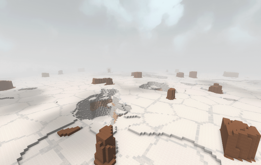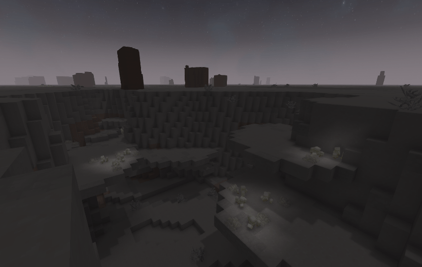 Explora una vasta extensión plana que se genera sin fin, salpicada de altos bloques de arenisca roja y con profundos desfiladeros que cortan el terreno. Este mod no añade nuevos objetos ni bloques; el bioma simplemente sirve como un lugar para recolectar algunos recursos si los necesitas, o como una novedad para explorar. ¡Sin embargo, podría considerar añadir nuevos bloques en el futuro!