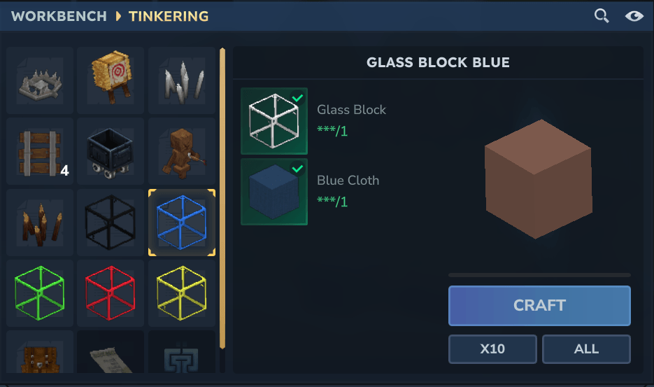 Vista previa de todos los bloques de cristal.