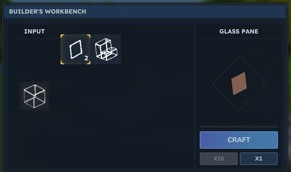 Para elaborar paneles de cristal o escaleras de cristal (solo cristal normal), debes colocar bloques de cristal en la mesa de trabajo del constructor.