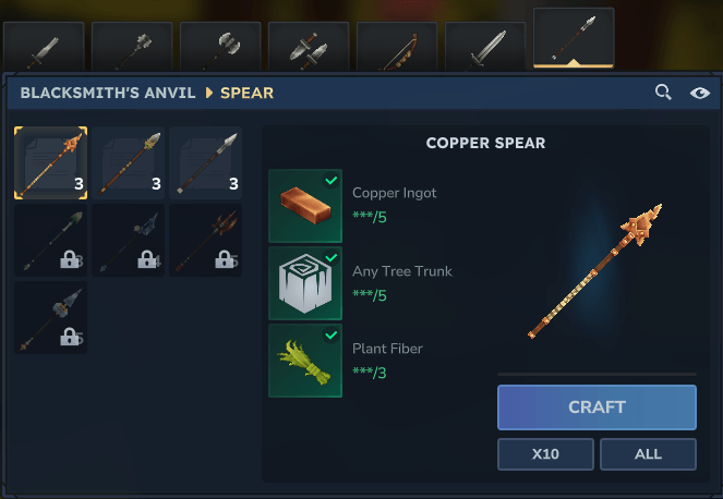 La lanza también se elabora en el yunque del herrero. Puedes lanzar la lanza.