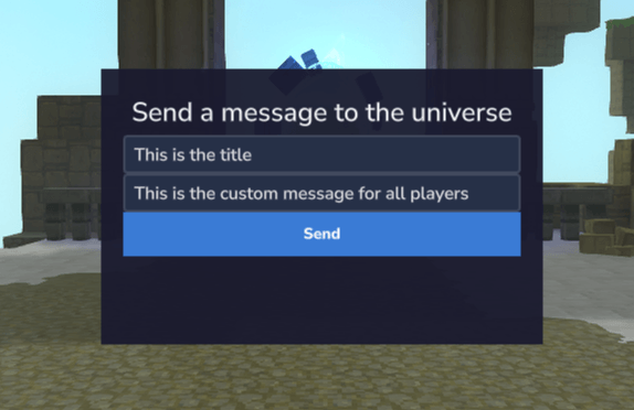 Envía un mensaje a todos los jugadores en el servidor, sin importar su ubicación. Escribe el comando “/m” y completa los campos con el mensaje y el título. Esta es mi primera vez creando un mod para un juego.