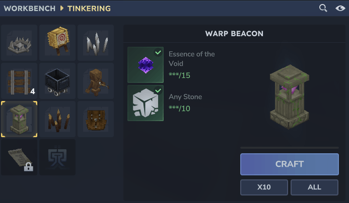 Este es mi primer plugin, así que no esperes nada elegante, pero funciona. El cristal solo te teletransporta al último Faro de Warp activado.