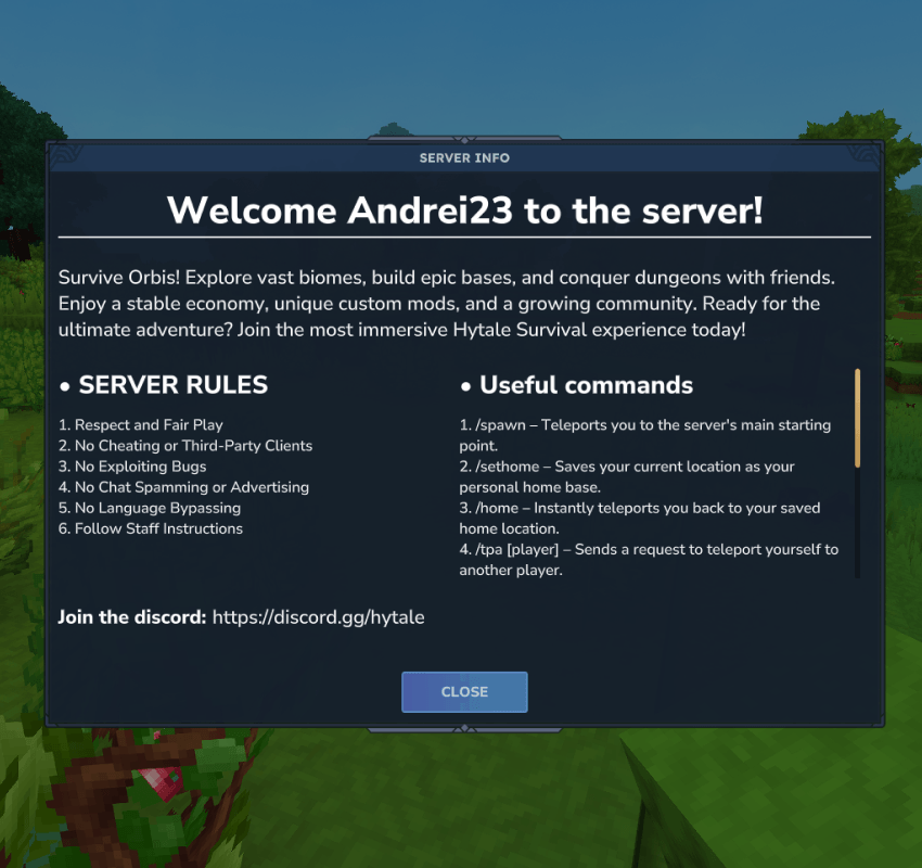 🚪 JoinScreen 🖥️ Un popup de bienvenida avanzado, basado en imágenes, amigable con los servidores para Hytale. JoinScre...
